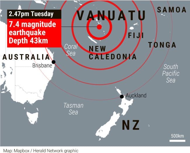 The quake sparked a tsunami threat, which passed after initial waves of about 25cm in size reached the Port Vila coast.