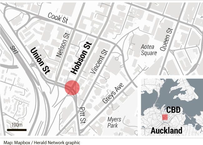 Police cordons were in place on Union St and Hobson St in central Auckland as officers responded to the report about 7.55am.