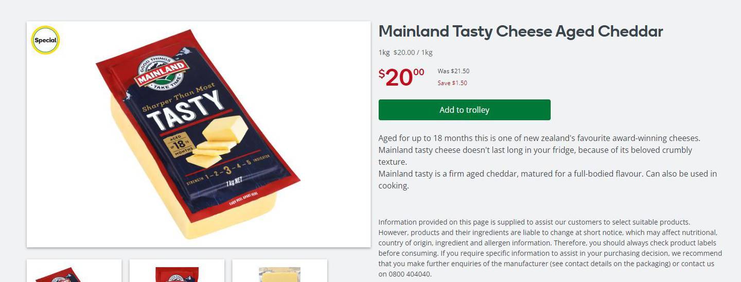 Meanwhile, online shoppers can save $1.50 with Tasty cheese on sale for $20 compared to Pak'nSave's $17.89 a block.Â