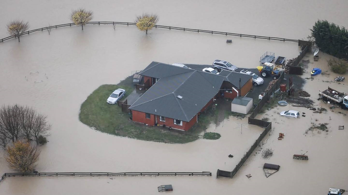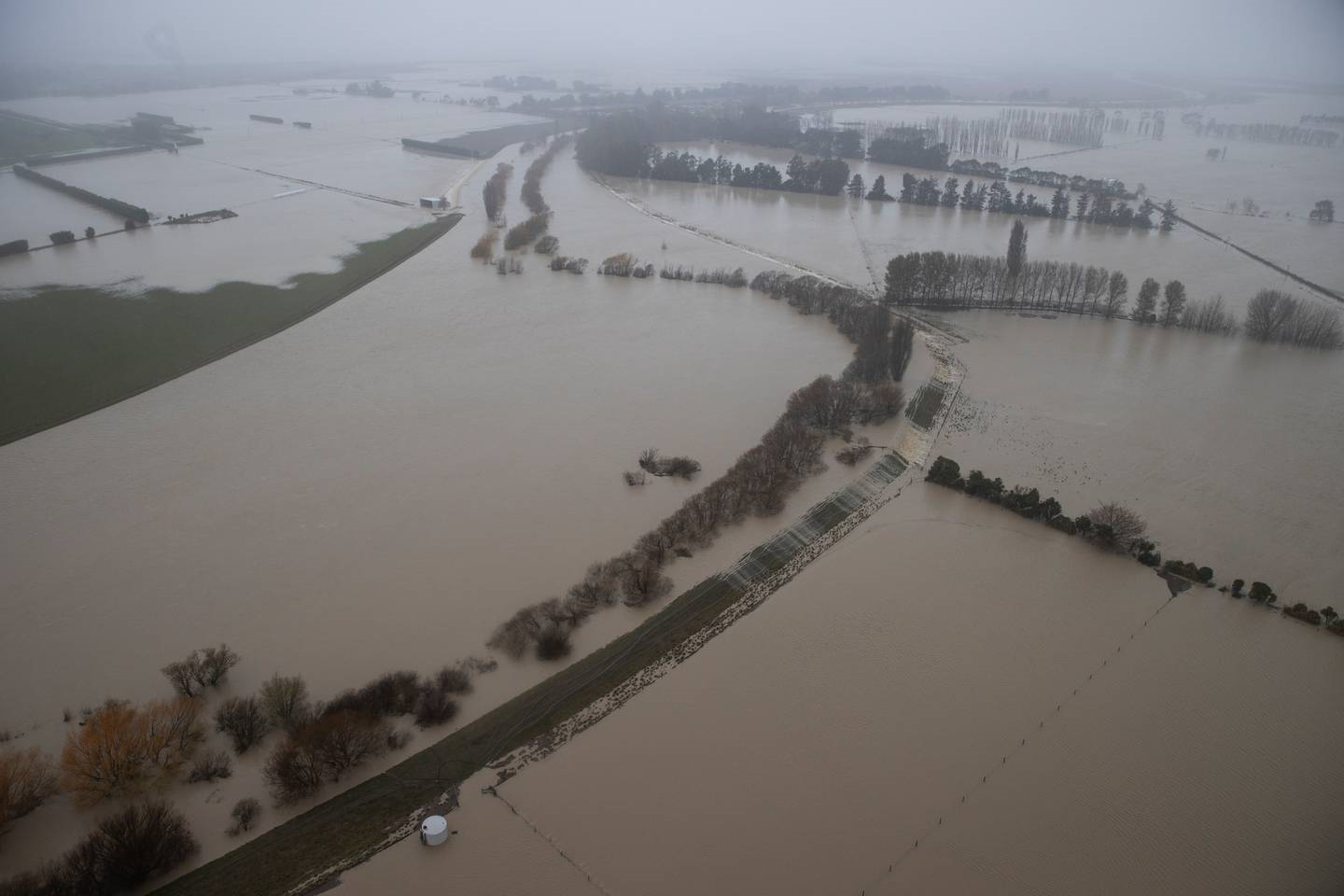 Aerial view of flooding in Canterbury as days of heavy rain has brought widespread water level rises. (Photo / George Heard)