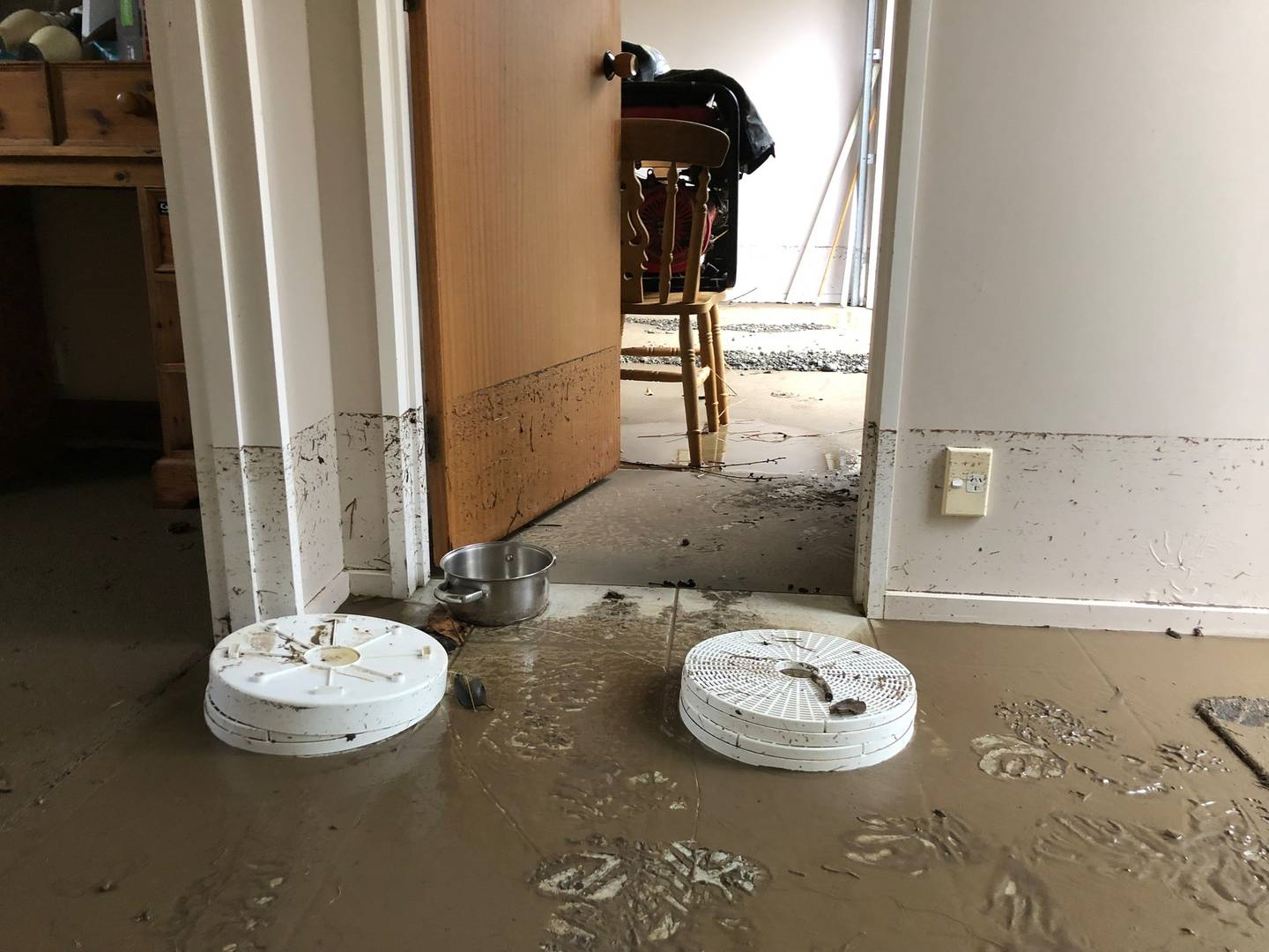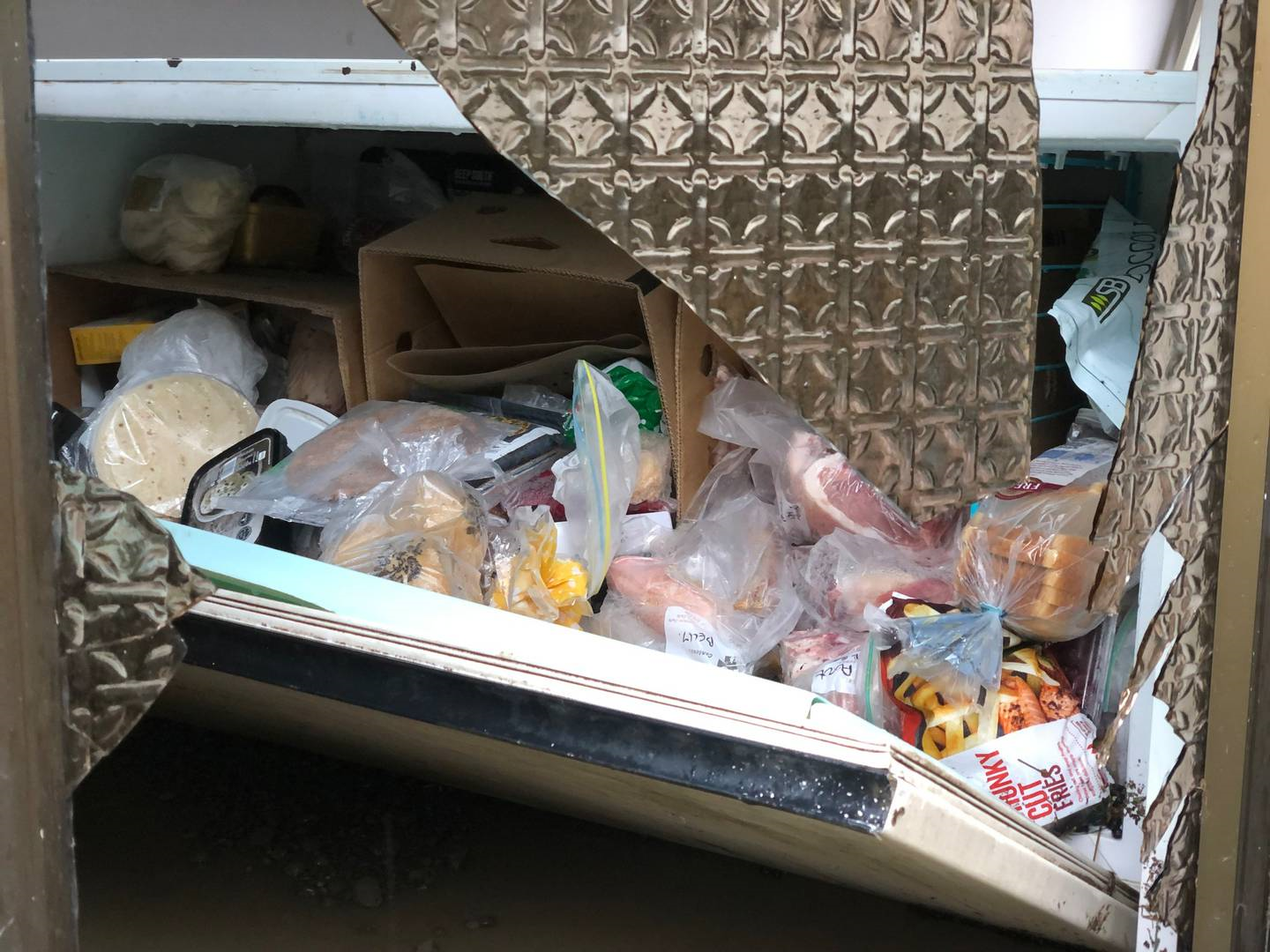 Such was the force of the water, a big chest freezer full of meat had been tipped on its side and smashed through the back door of the garage.