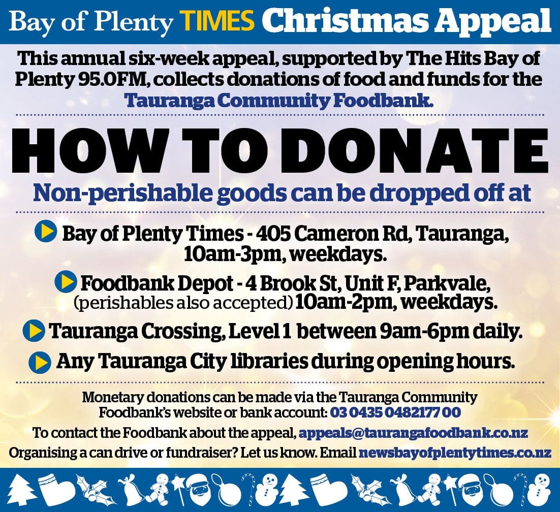 It comes as the Bay of Plenty Times launches its annual six-week annual Christmas Appeal for the Tauranga Community Foodbank today.