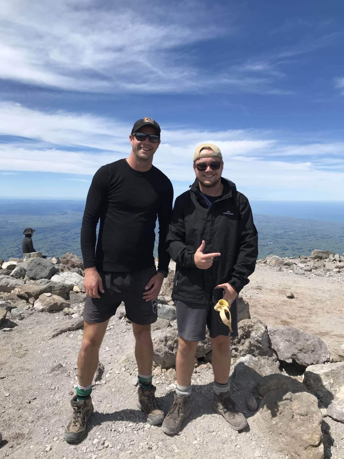 Simon Adams (left) and Jordy Adams at the top of Mt Taranaki. Photo / Supplied
