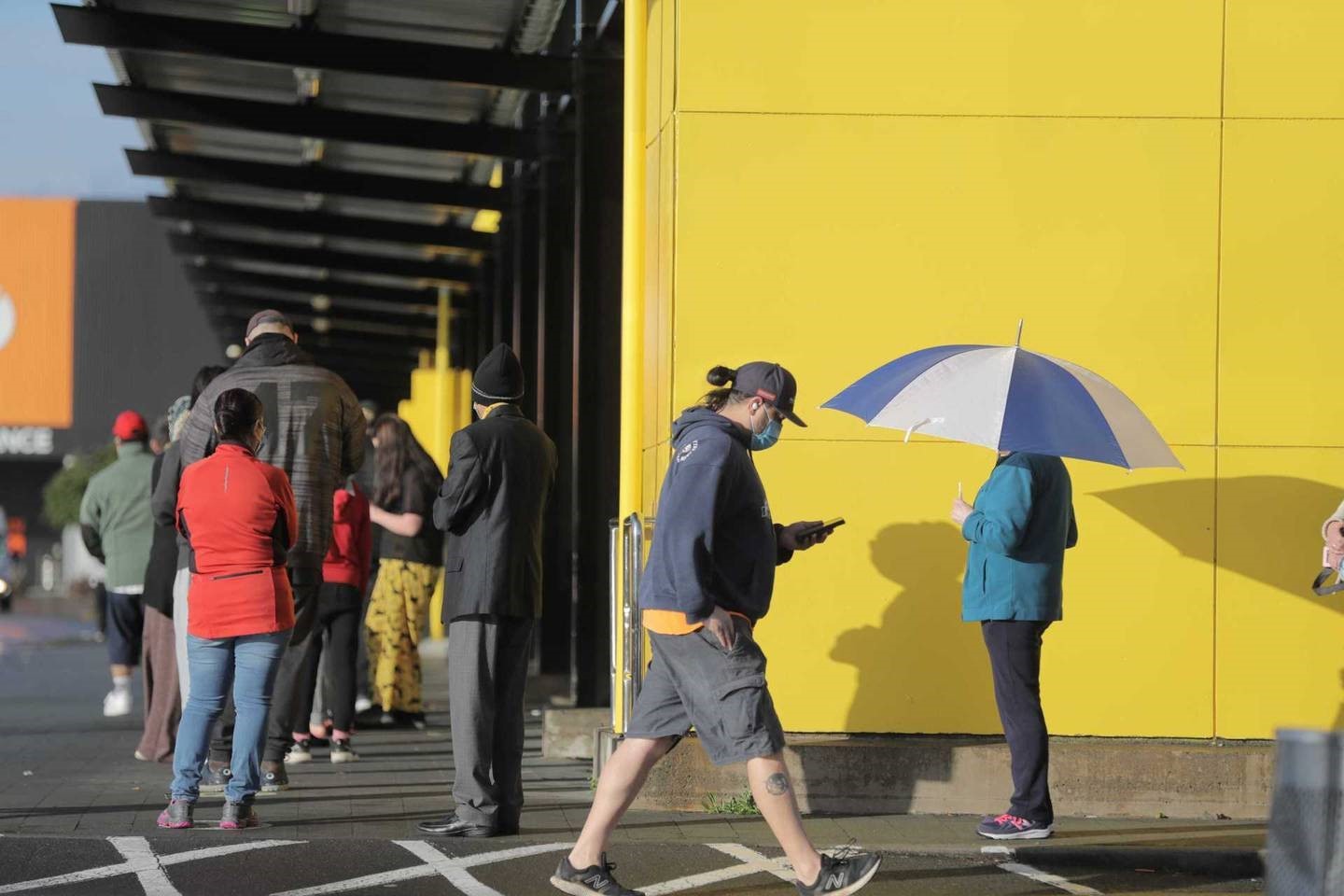 The Northcote testing site had lengthy queues. Many people in line arrived before the centre was open and have been waiting around three hours. Others further down Lake Rd will likely be waiting longer unless testing speed increases.