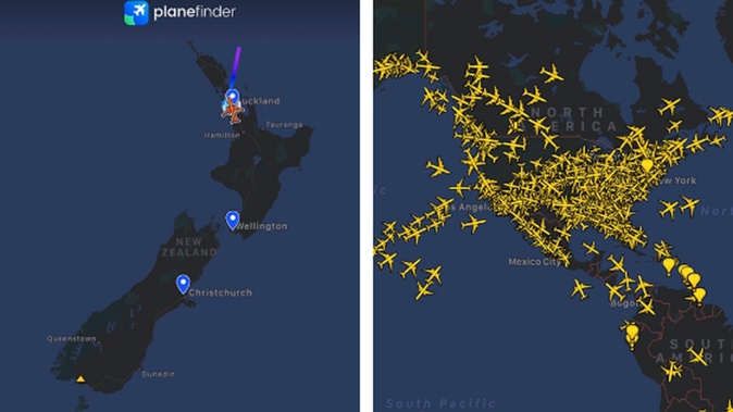 A live flight tracker reveals the impressive impact on New Zealand's travel restrictions compared to the United States of America (US).