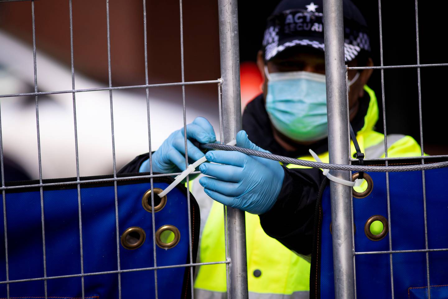 A security guard locks the main entrance at the Stamford Plaza Hotel which is been used as a Covid-19 managed isolation centre. Photo / Dean PurcellÂ