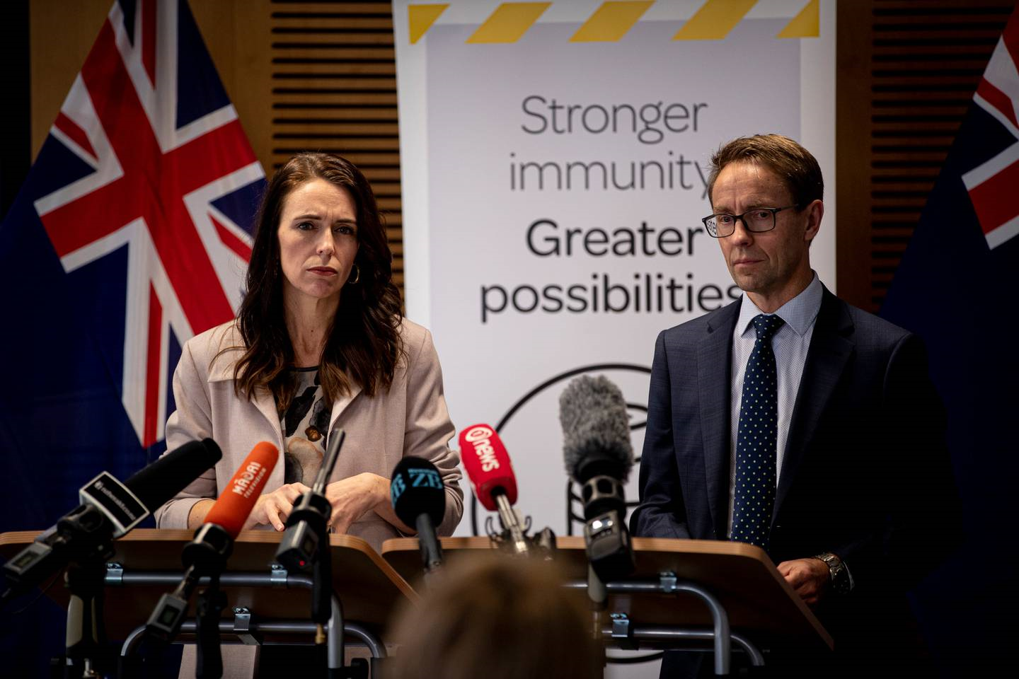 Prime Minister Jacinda Ardern and director general of health Dr Ashley Bloomfield unveil the Covid-19 vaccine programme. (Photo / Dean Purcell)
