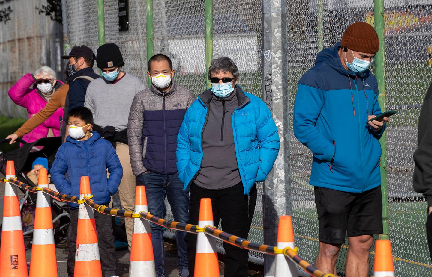 People waiting in line to be tested for Covid-19 at Hataitai Park in Wellington. Photo / Mark Mitchell