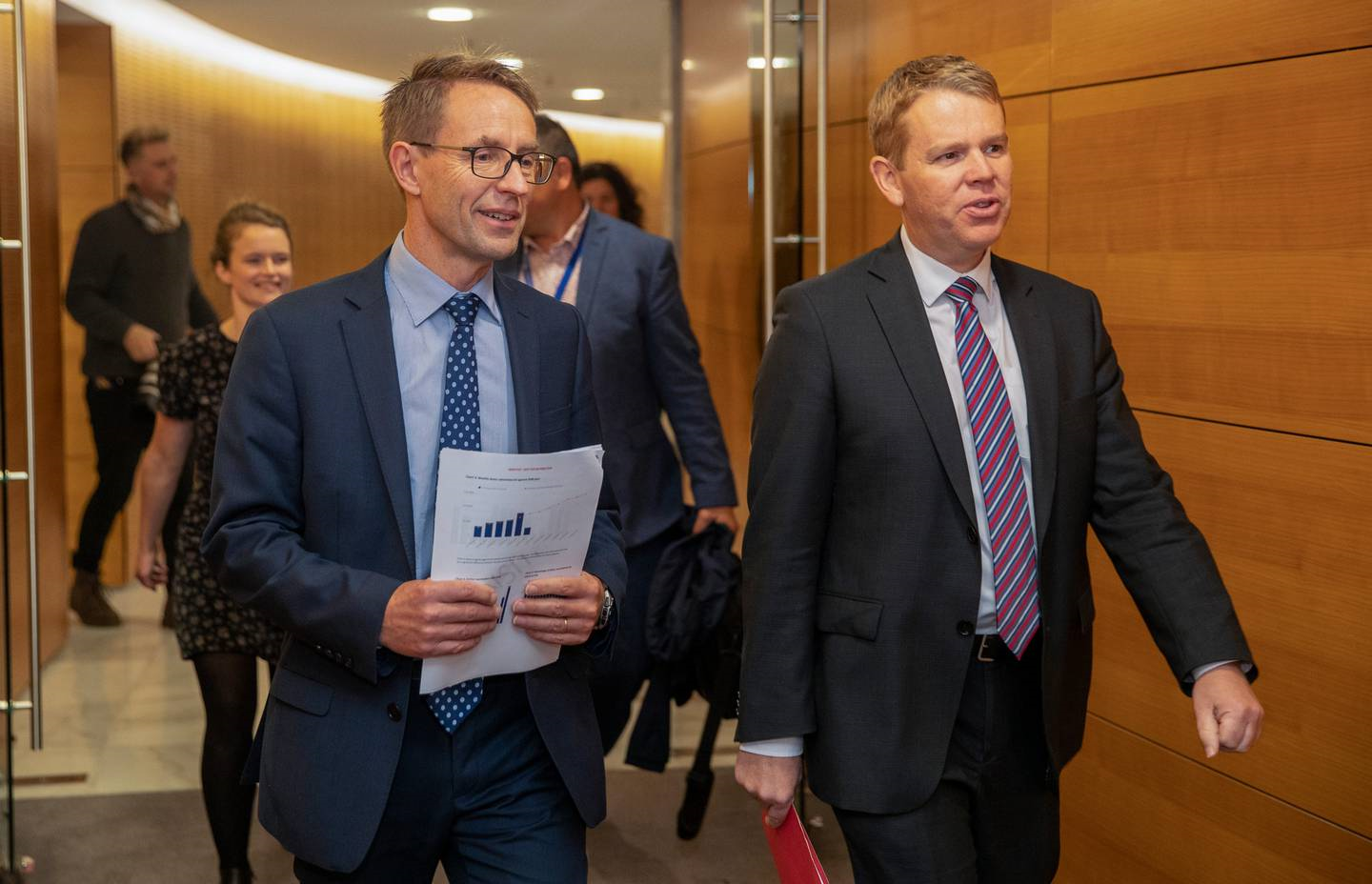 Director general of health Dr Ashley Bloomfield, left, and Covid-19 Response Minister Chris Hipkins. Photo / Mark Mitchell