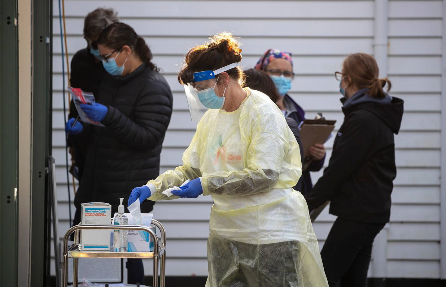Nurse in action testing people for Covid-19 at Hataitai Park in Wellington. Photo / Mark Mitchell
