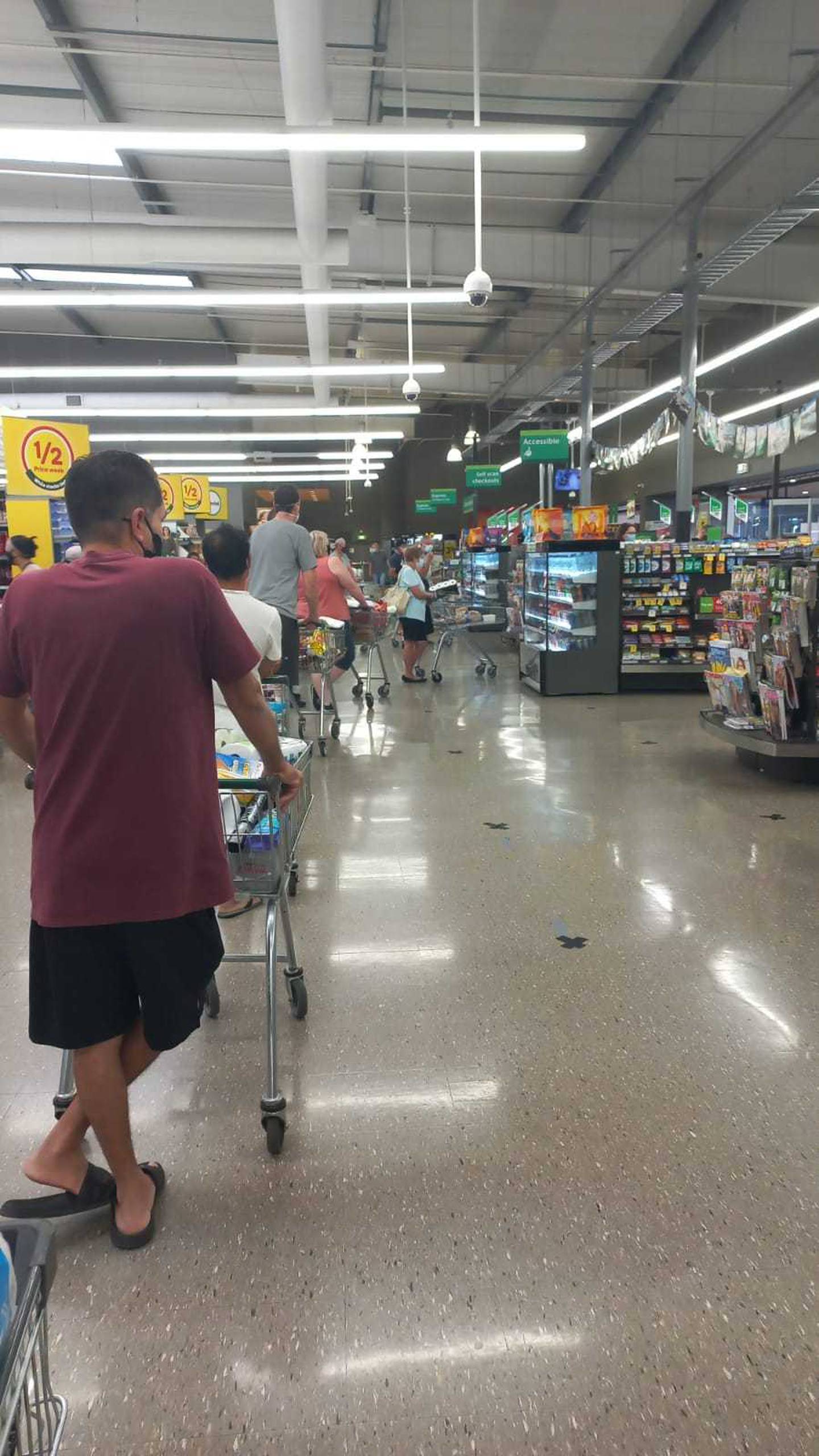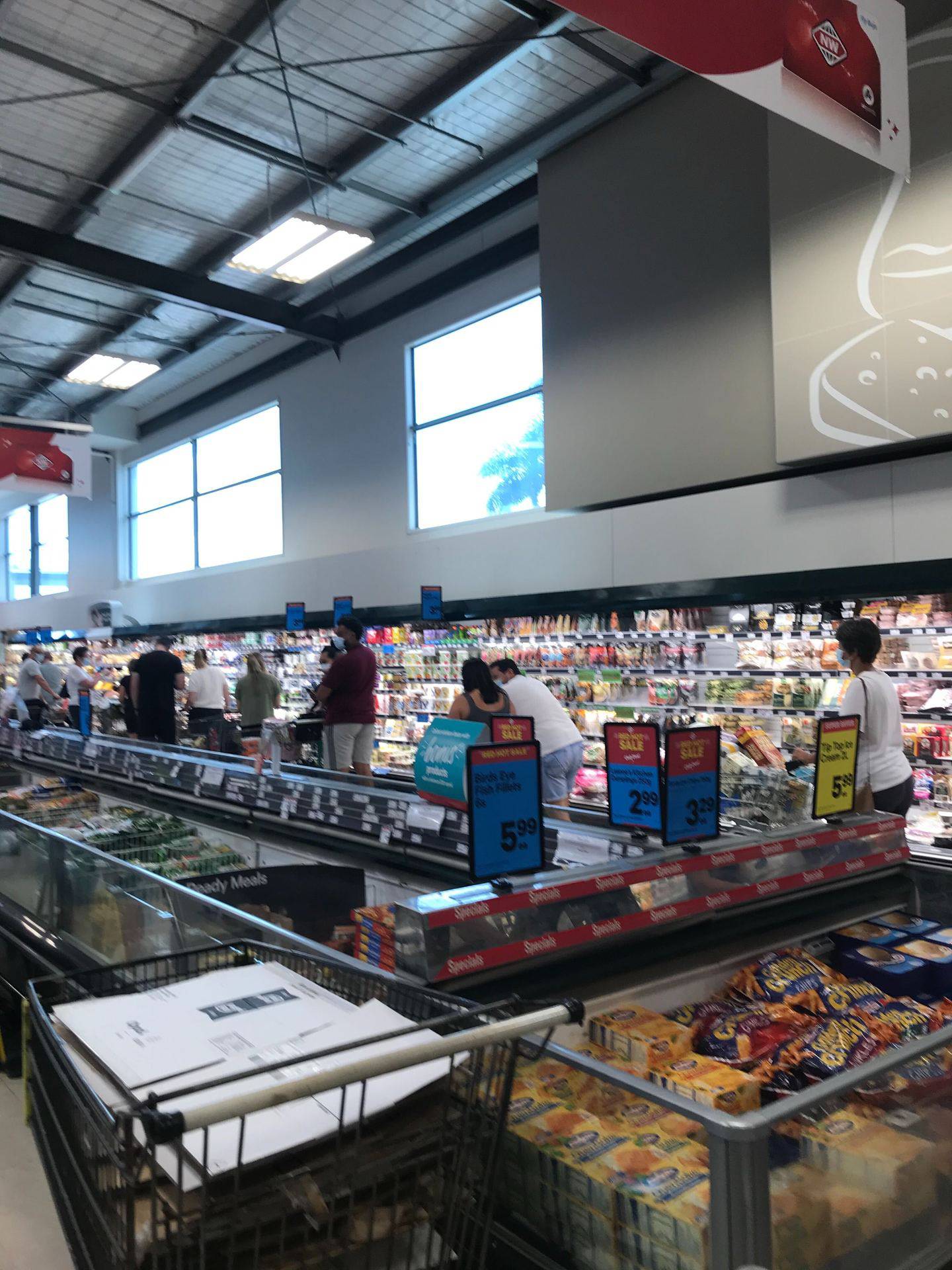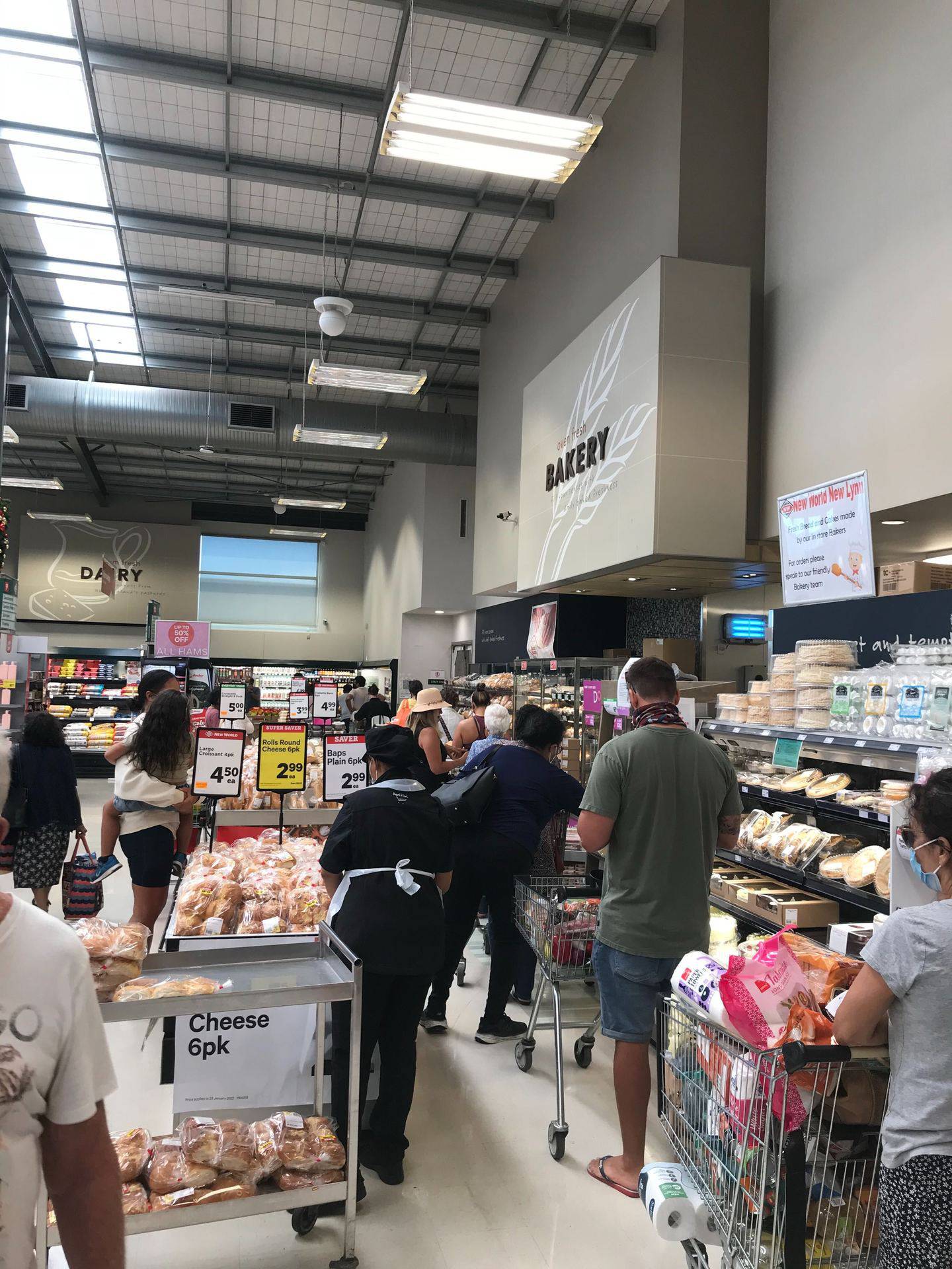 Shoppers packed into Countdown Kelston to stock up on groceries at 10:30am, with long queues at checkouts.
