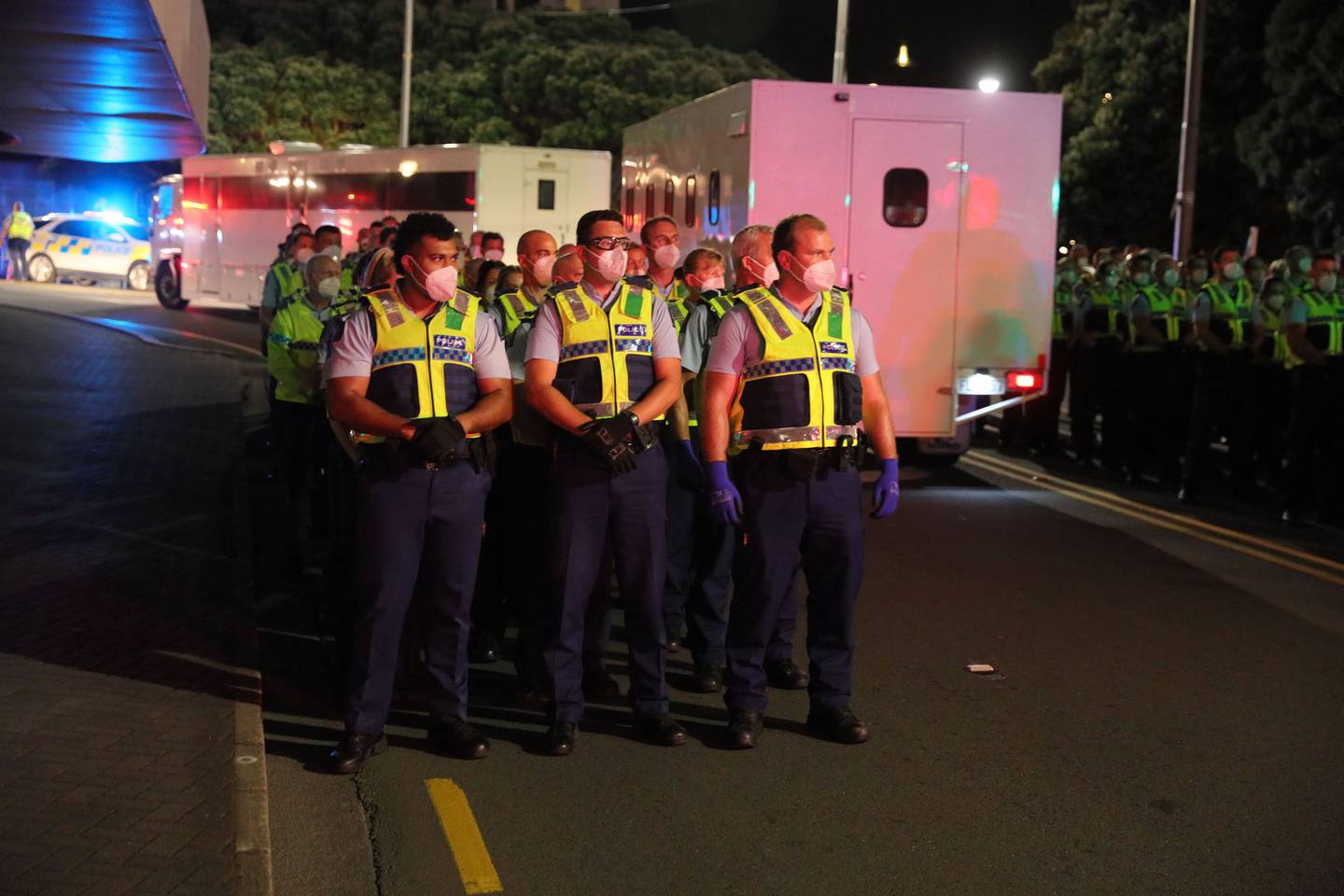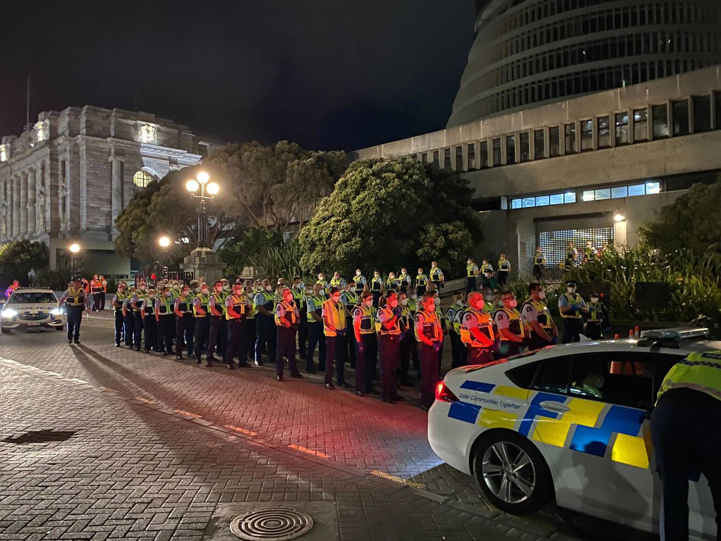 "As you have already heard, there is a larger than usual number of police in Wellington tonight," the group wrote on Facebook. "We are very concerned about what they may be planning to do to the peaceful protesters of Parliament tonight. In order to reduce the chance of anything unfortunate happening, we request that as many New Zealanders as possible come to central Wellington tonight.Â