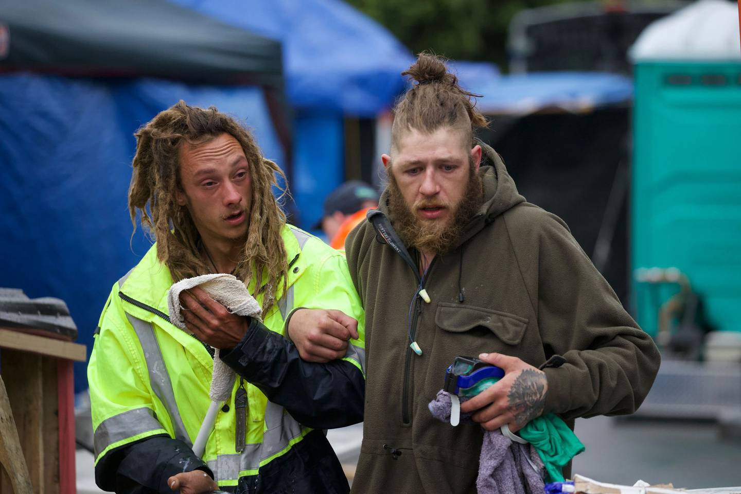 A police spokesperson said they were searching for the people who let down the police vehicles' tyres, and that any more large infrastructure brought in by protesters would be confiscated and not returned.Â