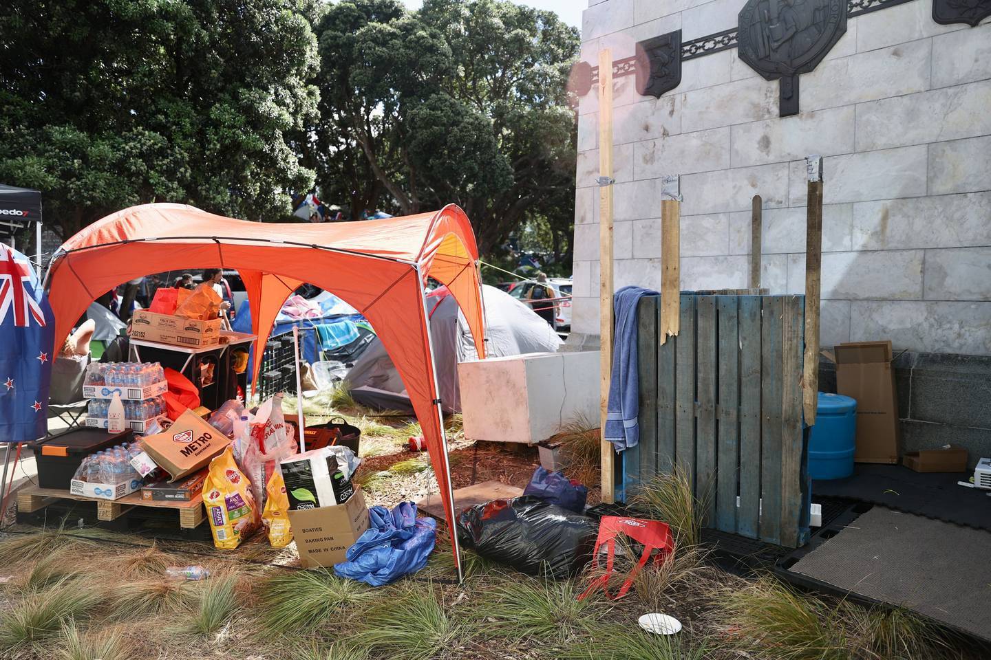 The protest camp grew yesterday as a fresh convoy of cars – which began in Auckland – arrived in Wellington.Â