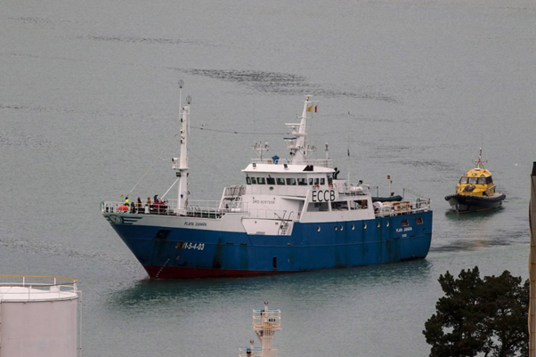 The Playa Zahara fishing vessel arrives at Lyttleton Harbour last week. Photo / The Shipping Database