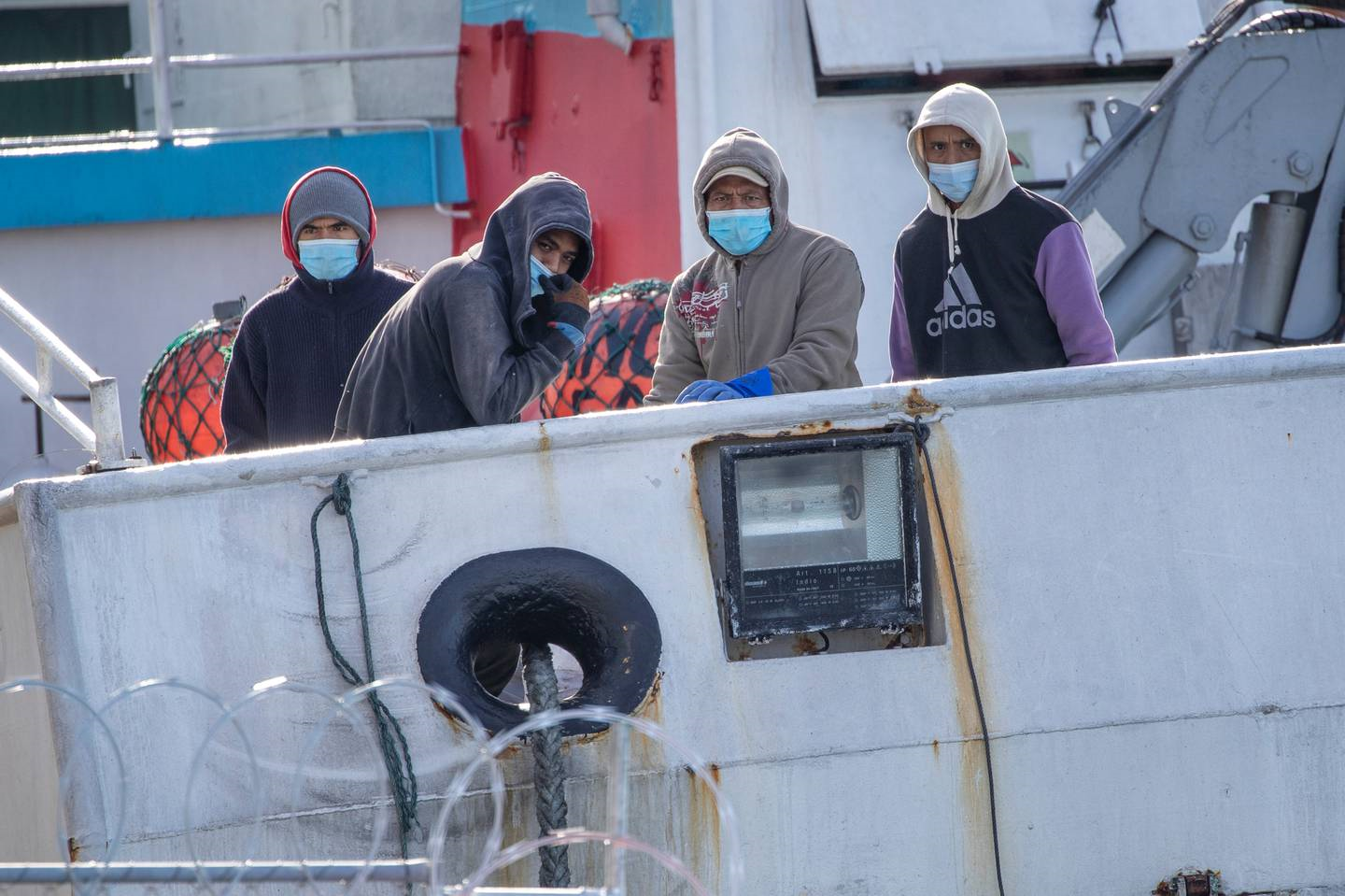 Crewmembers onboard The Viking Bay fishing vessel, as it arrived in Wellington Harbour in July, 2021. (Photo / Mark Mitchell)