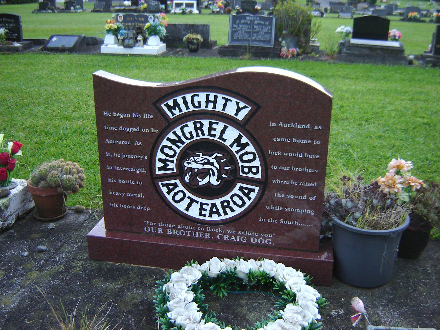Stone said several years before he died in the car crash, he told her that he wanted the Mongrel Mob to have a presence on his headstone.Â