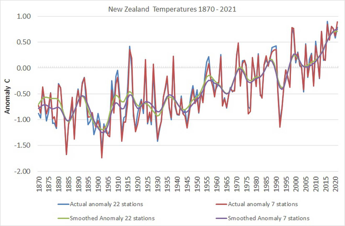 His calculations were based on the standard "seven-stations" temperature series that he helped develop, and which draw on more than a century of climate records taken from stations at Auckland, Wellington, Masterton, Nelson, Hokitika, Lincoln and Dunedin.Â