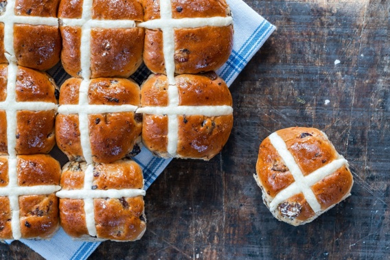 The flour cross piped over its fruity and spicy bun represents the crucifixion of the central figure in the Christian faith.