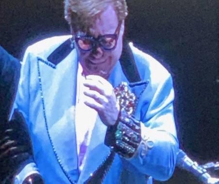 John told the crowd early in the concert he had been diagnosed with 'walking pneumonia' on Sunday morning. His voice was 'shot', he said, but he was determined to lay on a great show.