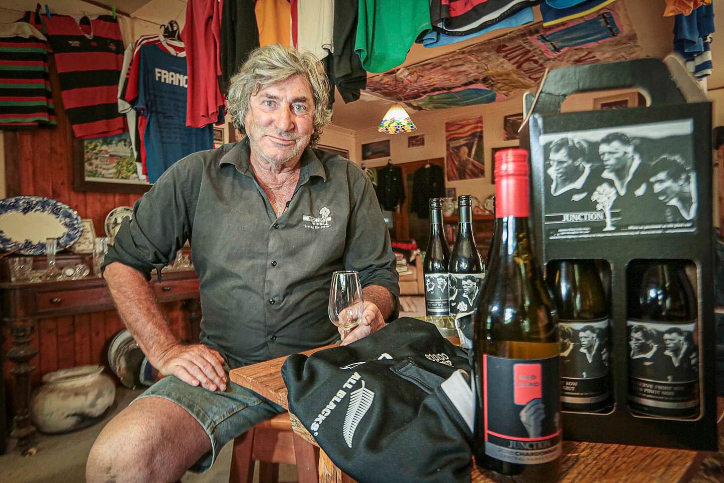 That includes in Junction Wines' rustic Cellar Door tasting room; a room in the family farm homestead which features jerseys, blazers, photos, scrapbooks featuring newspaper clippings that his mother lovingly curated and other items from Ashworth's lengthy rugby career.Â