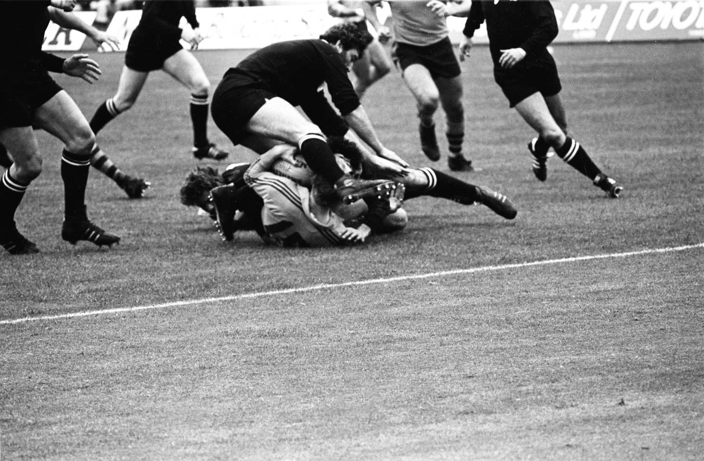 John Ashworth in the thick of the action during the All Blacks / Wallabies test series in 1978. Photo / NZMEÂ