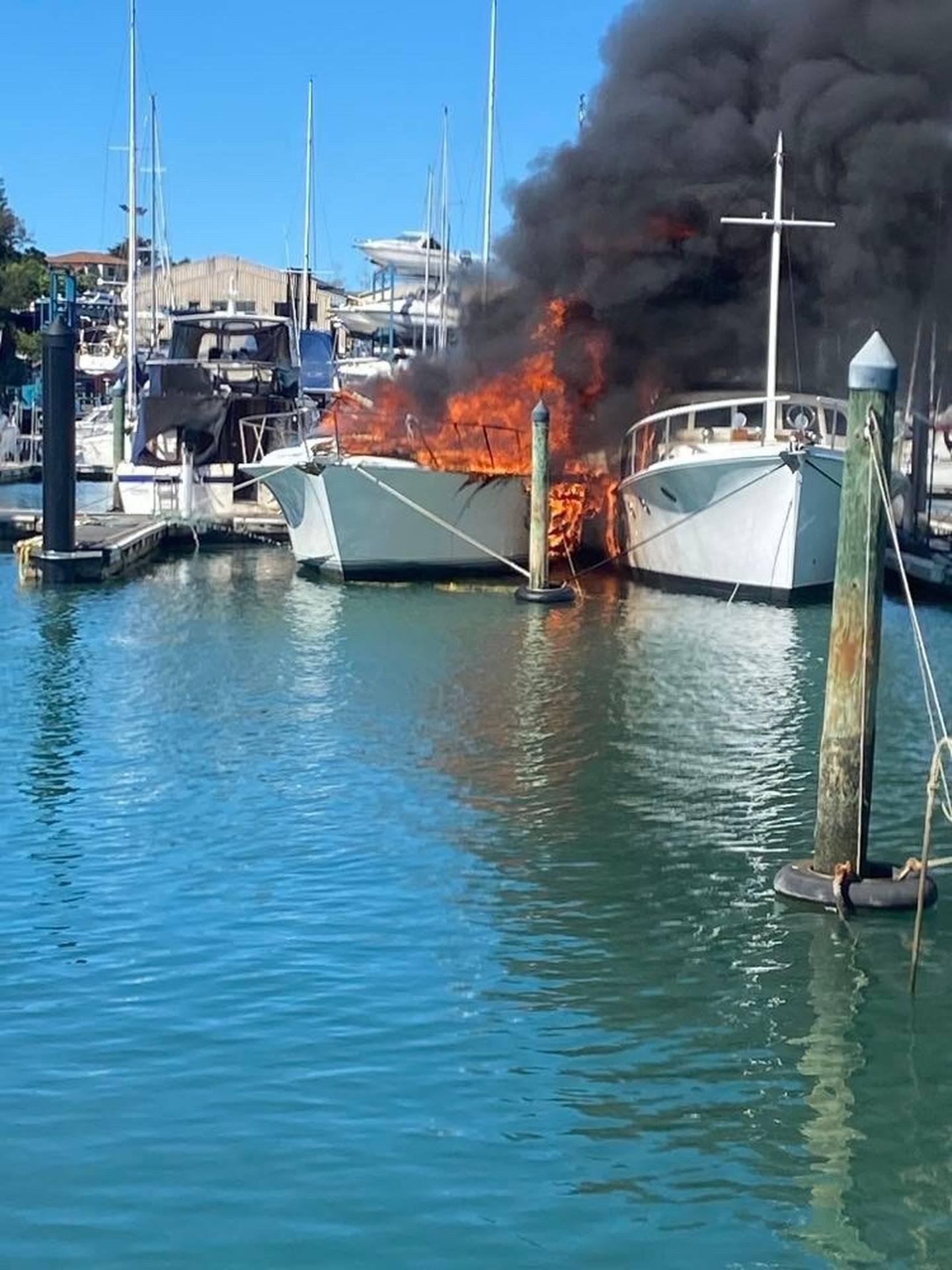 The fire spread to adjacent boats with up to five yachts damaged in the fire.Â