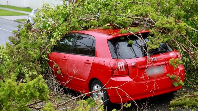 Esme Barber’s 10-year-old daughter and the child’s nanny were lucky to escape harm when part of tree on a property across the street came down on the nanny’s car parked outside Barber’s Northboro Rd home in Hauraki, as Cyclone Tam swept past the country yesterday.