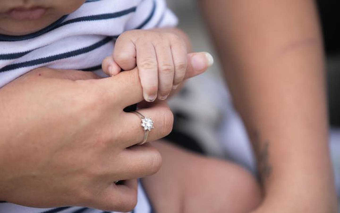Mariska Kruger sits on a park bench in Napier holding her youngest son. Photo / RNZÂ