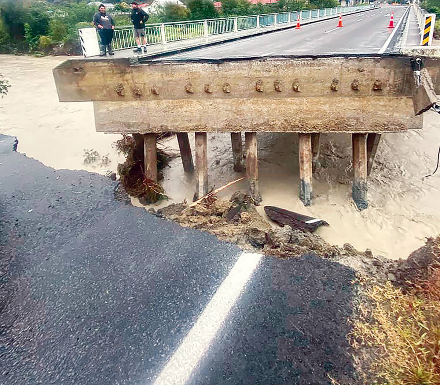 The Tokomaru Bridge washed out as the East Cape was hit by torrential rain on March 23, 2022. Photo / Jack Takurua Jnr
