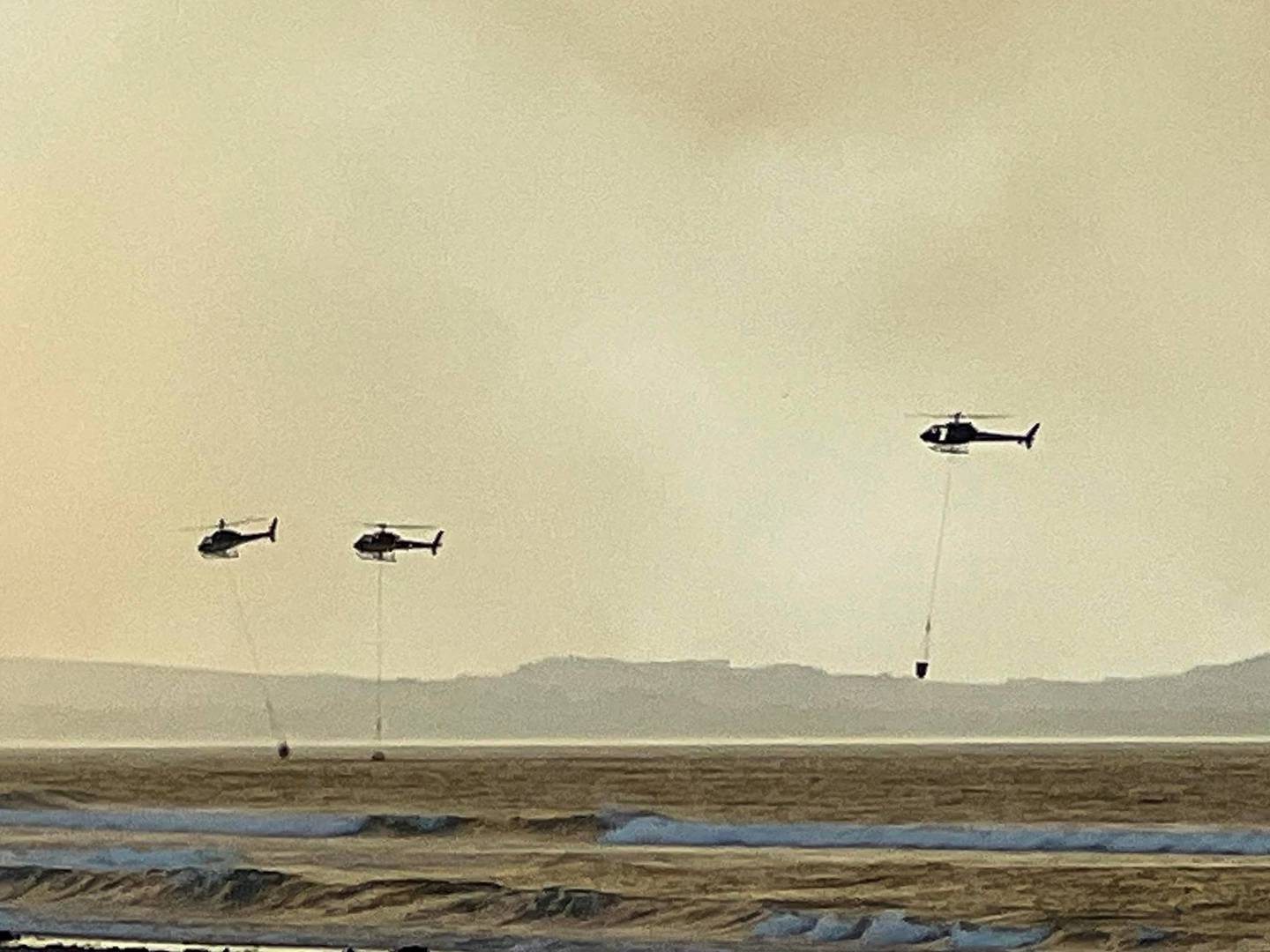The helicopter base is now being shifted back to a farm off Srhoj Rd where the choppers operated from in the first days of the fire.