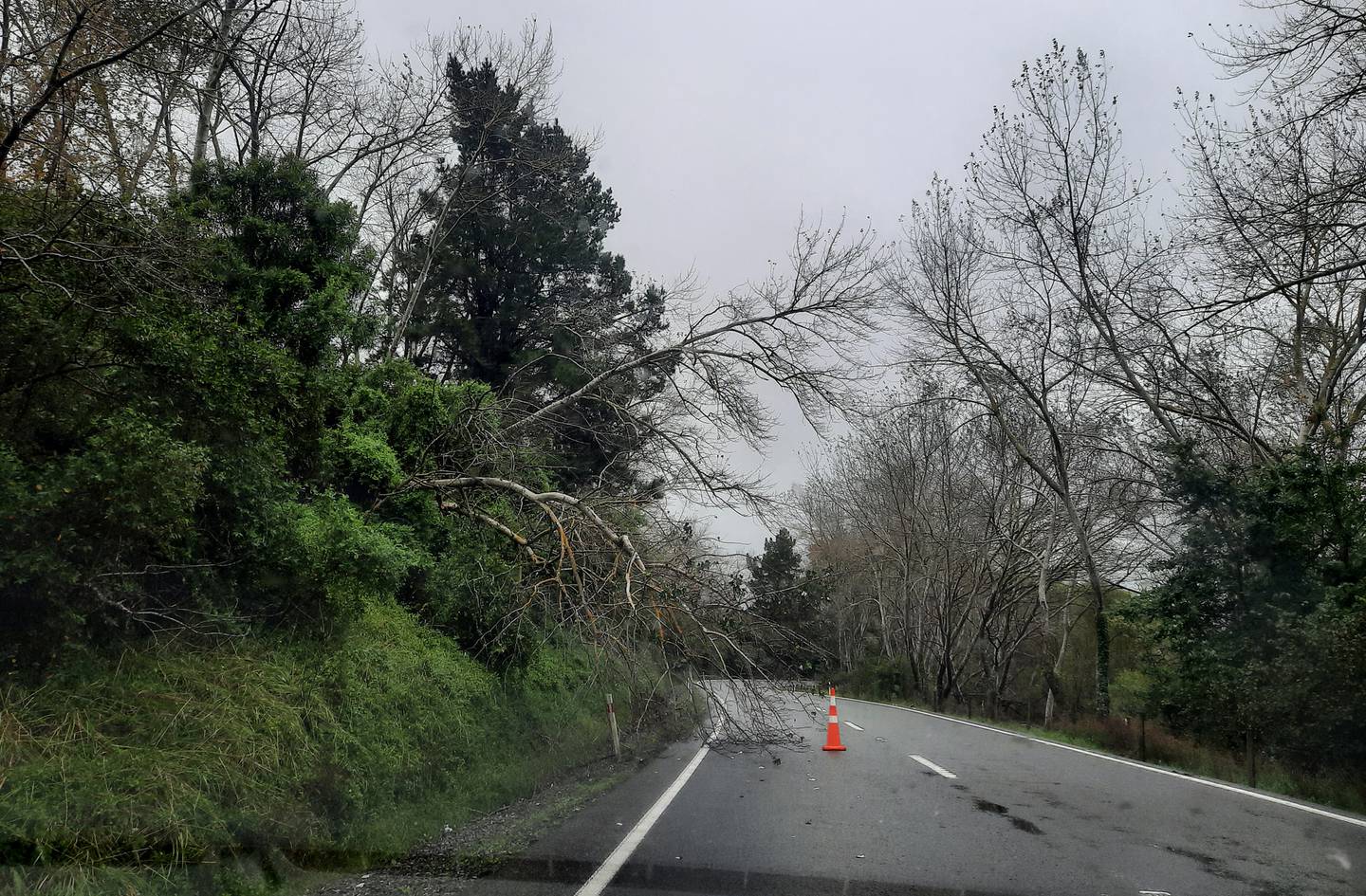 A fallen tree blocks one lane of SH35 on the East Coast. Photo / Neil Reid