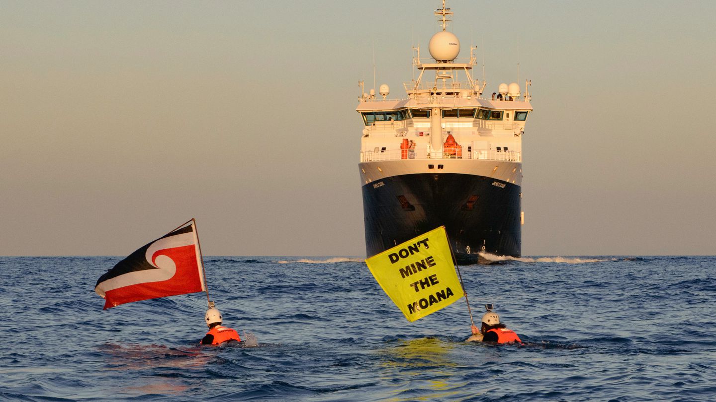 Māori Greenpeace activists have jumped in front of a deep-sea mining research vessel, UK Royal Research Ship James Cook, off the coast of Costa Rica today.