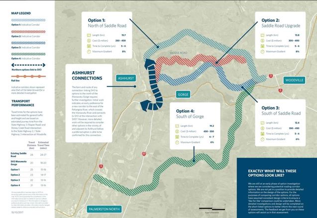 To see which roads are associated with each option, use the social pinpoint link on the website www.nzta.nz/manawatu-gorge