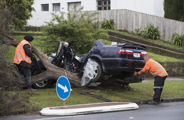 The aftermath of the crash that killed Morrocco Tai, 15, in South Auckland. (Photo \ NZ Herald)