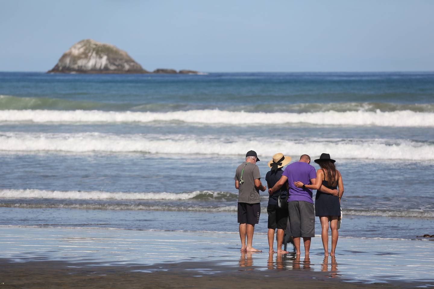 Friends of Sarah-Jane Bayram pay tribute at a Māori blessing ceremony at Muriwai Beach days after she died in a skydiving accident last month. Photo / Sylvie Whinray