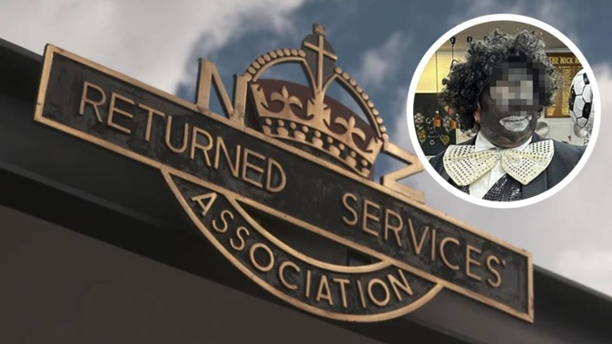 An image on the Matamata RSA’s Facebook page showed a guest donning minstrel attire including a black curly wig, black painted face, large white painted lips and white circles around their eyes as part of the event on Friday.