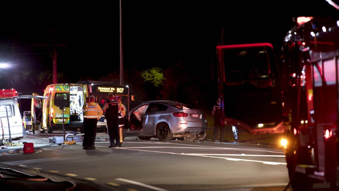 Two people are fighting for their lives and three others have been injured after a crash on Auckland's North Shore last night. Photo / Hayden WoodwardÂ
