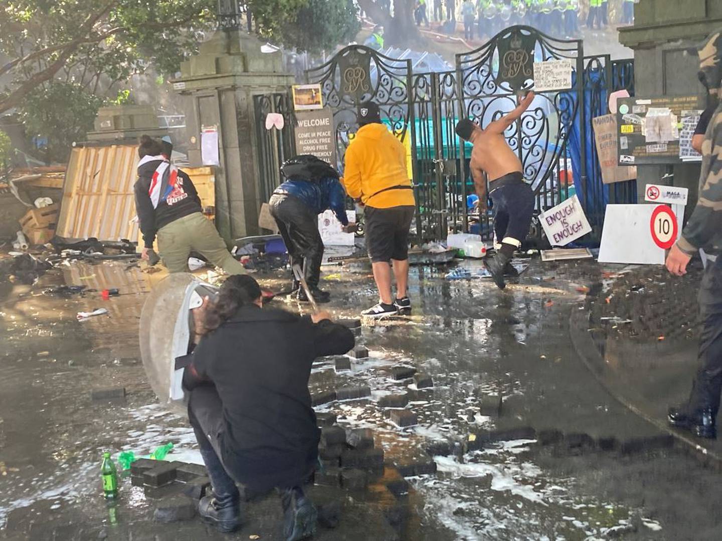 Today riot police successfully stormed Parliament's front lawn, tearing down tents and shunting protesters away from the site.