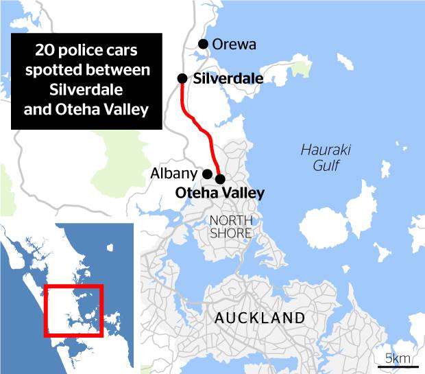 A witness in Kumeu said six police cars were speeding north towards Waimaukau.