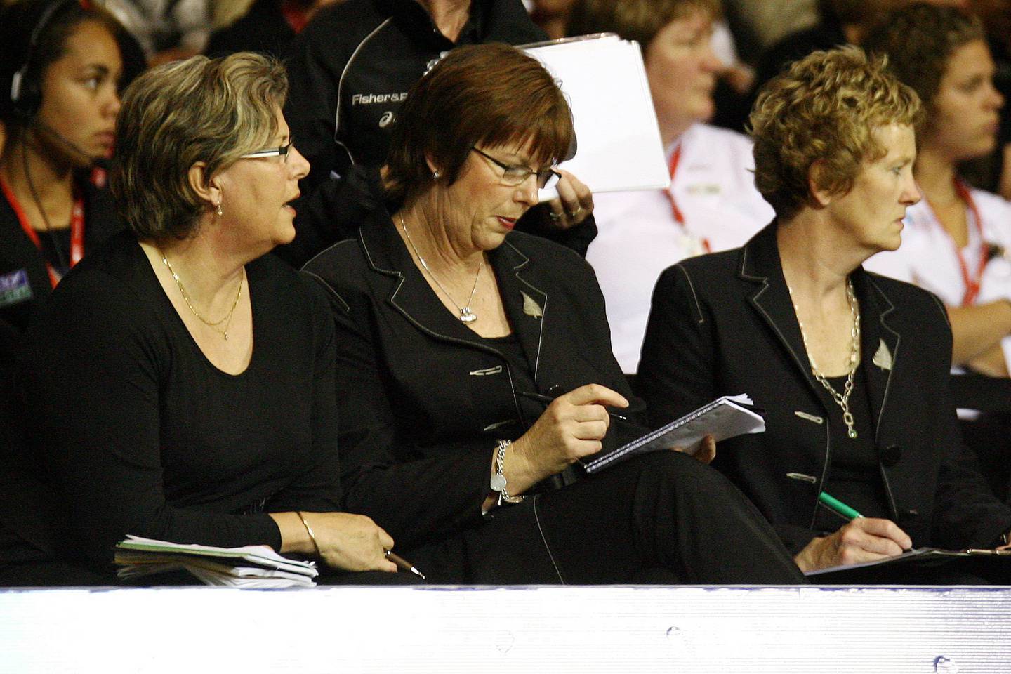 Ruth Aitkin (centre), the most capped Silver Ferns coach, has been made a Dame. Photo / File