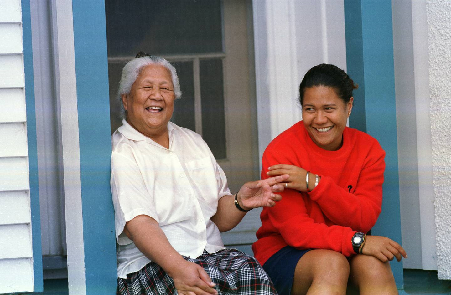 Dr Jemaima Tiatia-Seath pictured with her grandmother, Suresa Gavet, in 1998. (Photo / Martin Sykes)