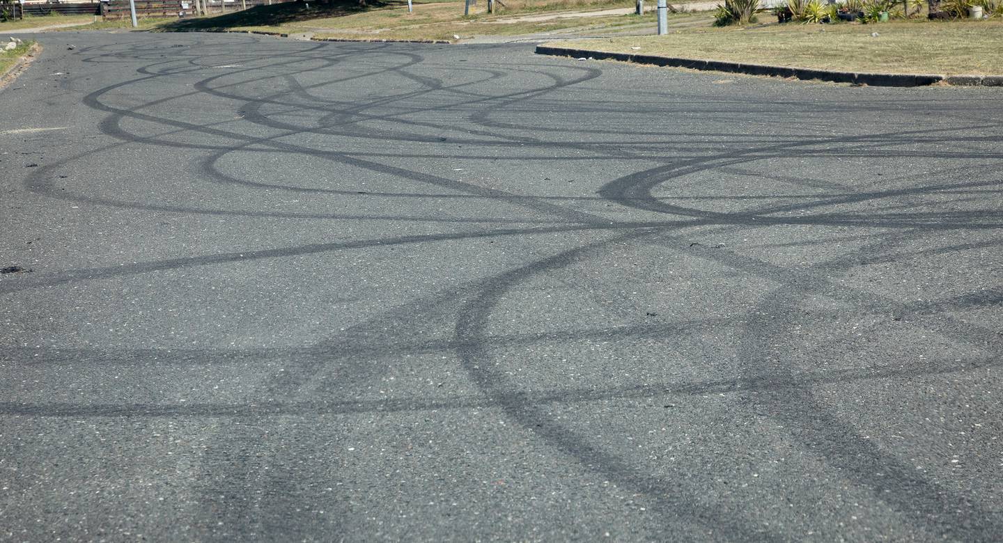 Skid marks on the road in Tania Cres. Photo / Andrew WarnerÂ