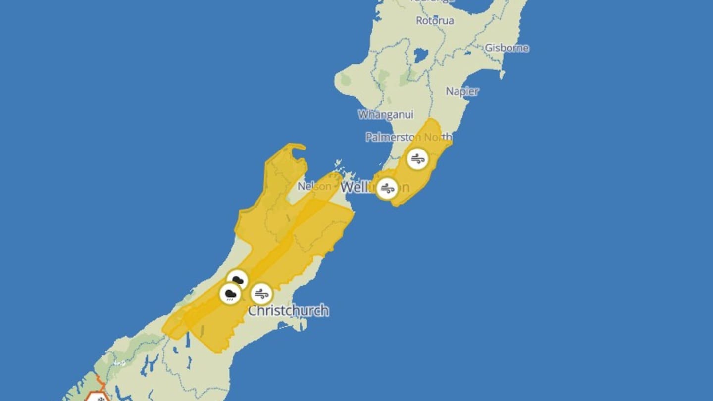 A strong wind watch has been issued for Wairarapa, Tararua, and the Canterbury high country, beginning Sunday at 1pm.