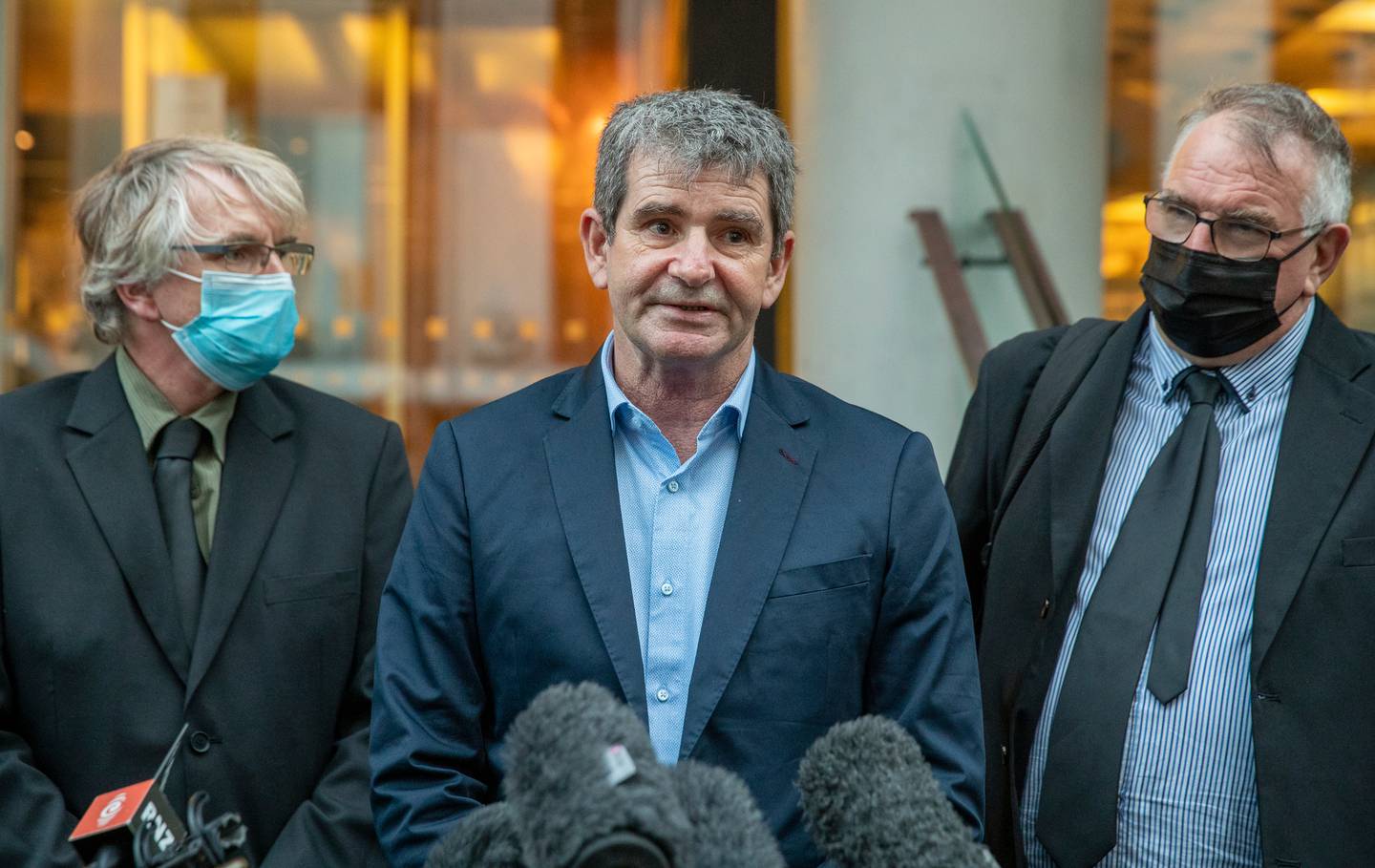 Brothers Greg, Geoff and Robert Hall spoke to media after their brother's decades-long fight for justice ended in a quashed conviction and acquittal. Photo / Mark MitchellÂ