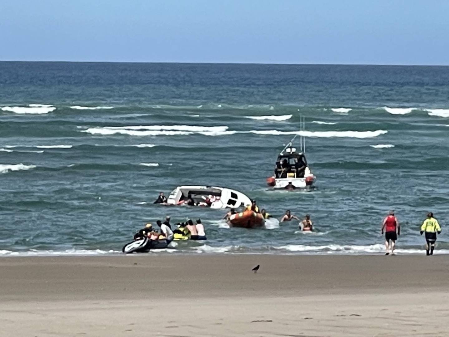 Aucklander Campbell Wright was on a boat going out fishing when he saw 20 to 30 people in the water trying to right the stricken vessel, which he estimated was about 5m long.Â