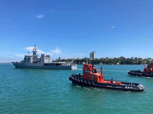 The Royal NZ Navy's HMNZS Wellington sets sail for Tonga, from Auckland's Devonport Naval Base, yesterday. Photo / NZDF