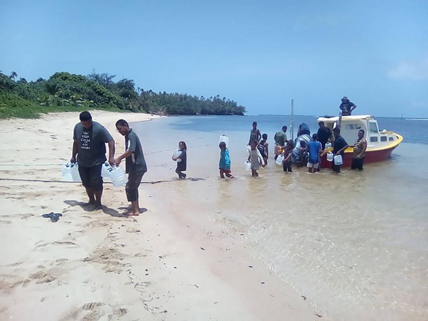 Fresh water is distributed after the volcano eruption in Tonga on Saturday. Photo / National Emergency Management Office in Tonga.Â