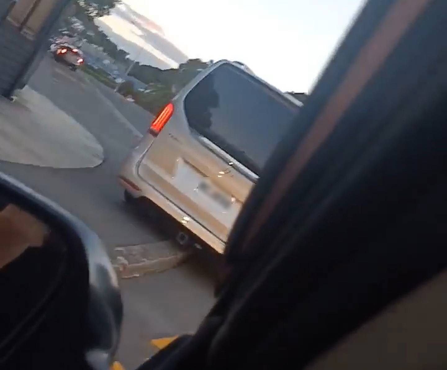The video, shot on the waterfront in Paihia and posted to social media last week, shows the Mercedes V-Class attempt to pull out on to the main road, taking to the footpath to avoid a car attempting to block it in