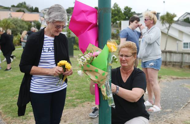 Pat Wearn went missing after going for her daily walk, friends lay flowers where she was last seen. (Photo / Doug Sherring)